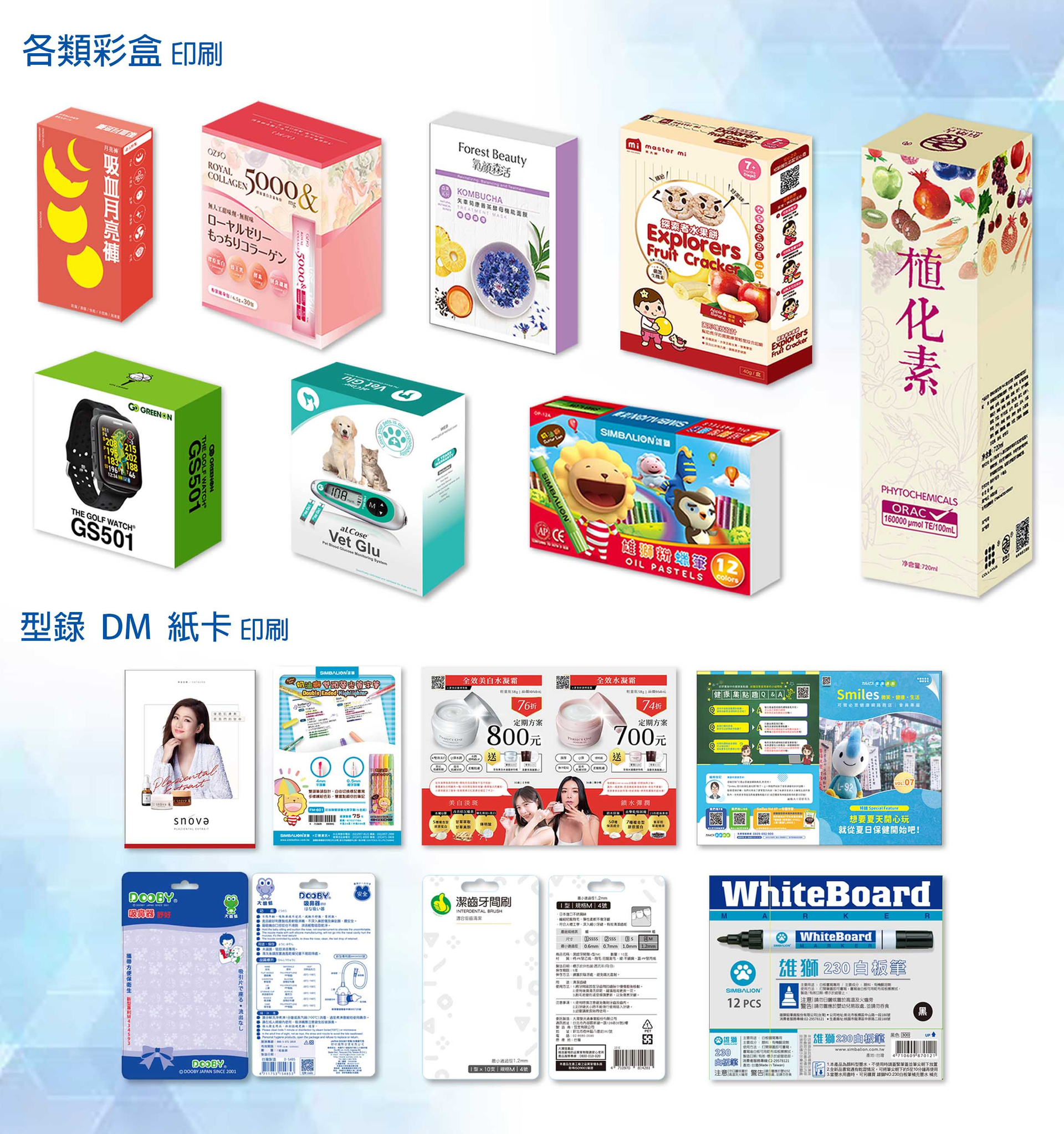 雄獅鉛筆廠彩盒(愛買、家樂福、九乘九..) 牙間刷紙卡(大潤發) 米大師米餅彩盒(大樹藥局) 月亮褲彩盒(寶雅)皇家膠原粉(康是美) 荔枝滿滿雪糕(全聯) 噴霧器彩盒(杏一) 高爾夫定位手錶彩盒(外銷日本)